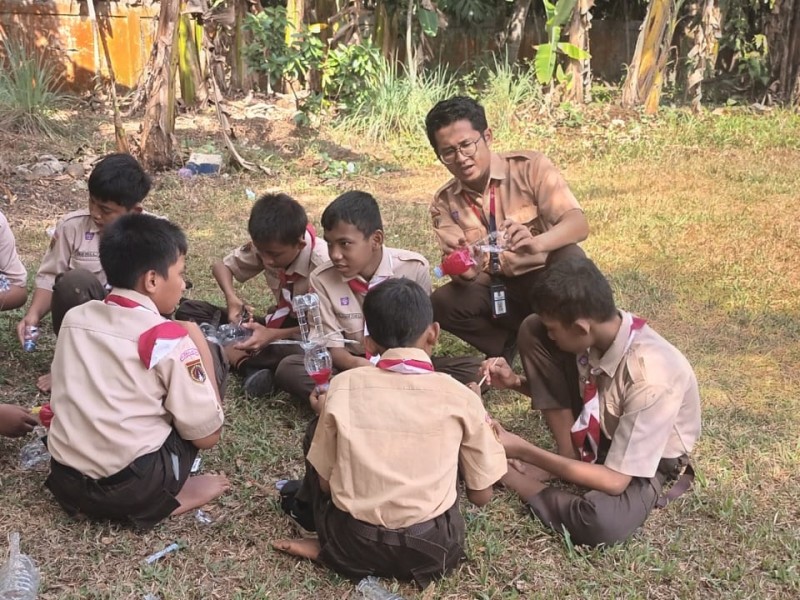 Aksi Inovasi, Peserta Didik Kelas VIII SMP Negeri 2 Pengadegan Membuat Pot Gantung dari Botol Bekas